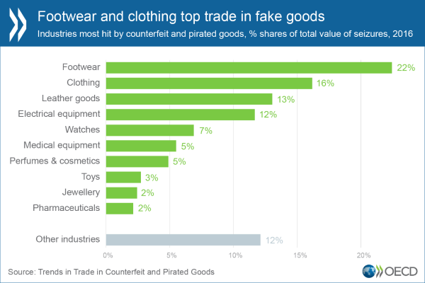 “Trade in fake goods, which infringe on trademarks and copyright, creates profits for organised crime gangs at the expense of companies and governments,” says the OECD.