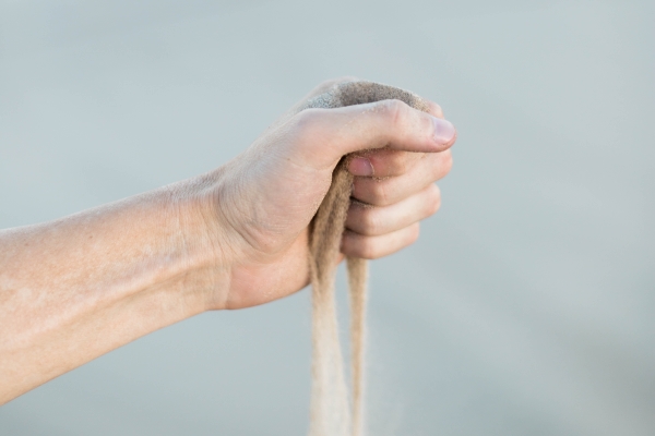 The marking system is based on sand mixed with three rare earth metallic elements. Firstly, a large bucket of sand is divided into three smaller tubs, with one of three different elements – europium, terbium and dysprosium – added to each tub. The elements, which light up when exposed to a specific wavelength of light, get absorbed into the surface of each grain of sand. The three tubs are then mixed together.